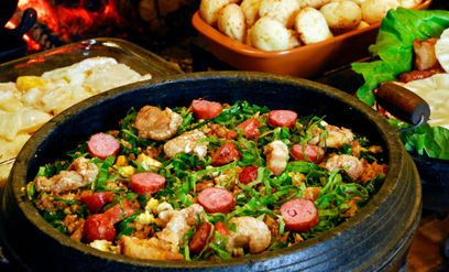 Regime de pensão completa, café da manhã, almoço e jantar inclusos. Gastronomia mineira, comida caseira servida no fogão à lenha. Feijão tropeiro, tutu à mineira, costelinha de porco, torresmo, feijoada, linguiça calabresa, entre outros, são algumas das comidas servidas sempre com uma grande variedade de salada com hortaliças colhidas em nossa própria horta orgânica. Outros pratos tradicionais também servidos como rondelli, panquecas de queijo e carne, truta, lasanha, nhoque, spaghetti, quibe, vários tipos de carne bovina, grande variedade de legumes entre outros. Nosso buffet de café da manhã servido com frutas, sucos, leite orgânico de nossas próprias vacas, frios, ovos, o famoso pão de queijo mineiro, grande variedade de bolos caseiros salgados e doces produzidos no hotel. Cardápio muito variado para todos os gostos.